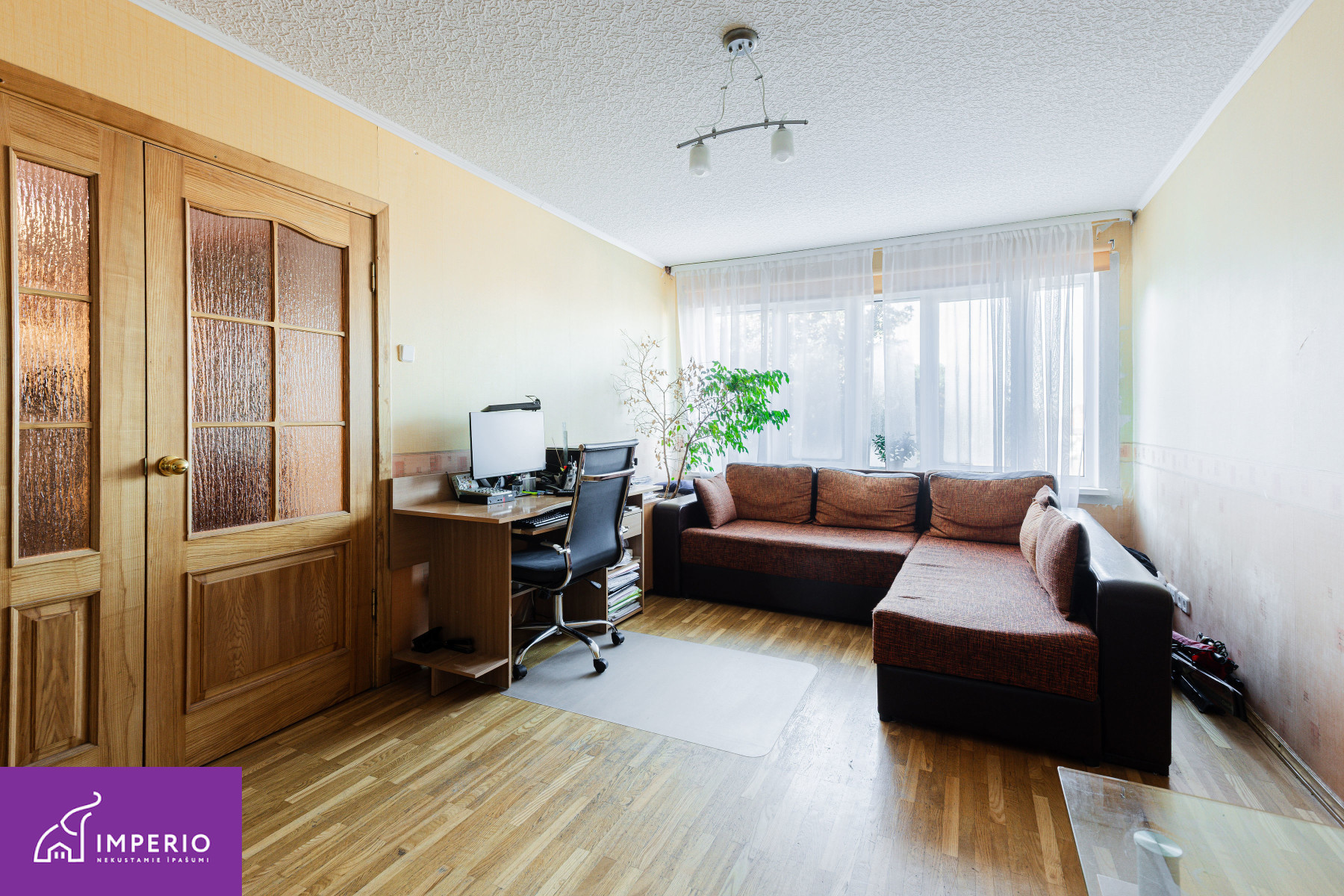 В центре Пиньки продаётся благоустроенная трёхкомнатная квартира в реновированном доме. В ходе реновации дома была проведена реконструкция фасада и замена крыши, а также замена окон, стояков отопления и радиаторов. Система отопления оснащена аллокаторами, позволяющими регулировать температуру в каждой комнате и оплачивать только фактически потреблённое тепло.