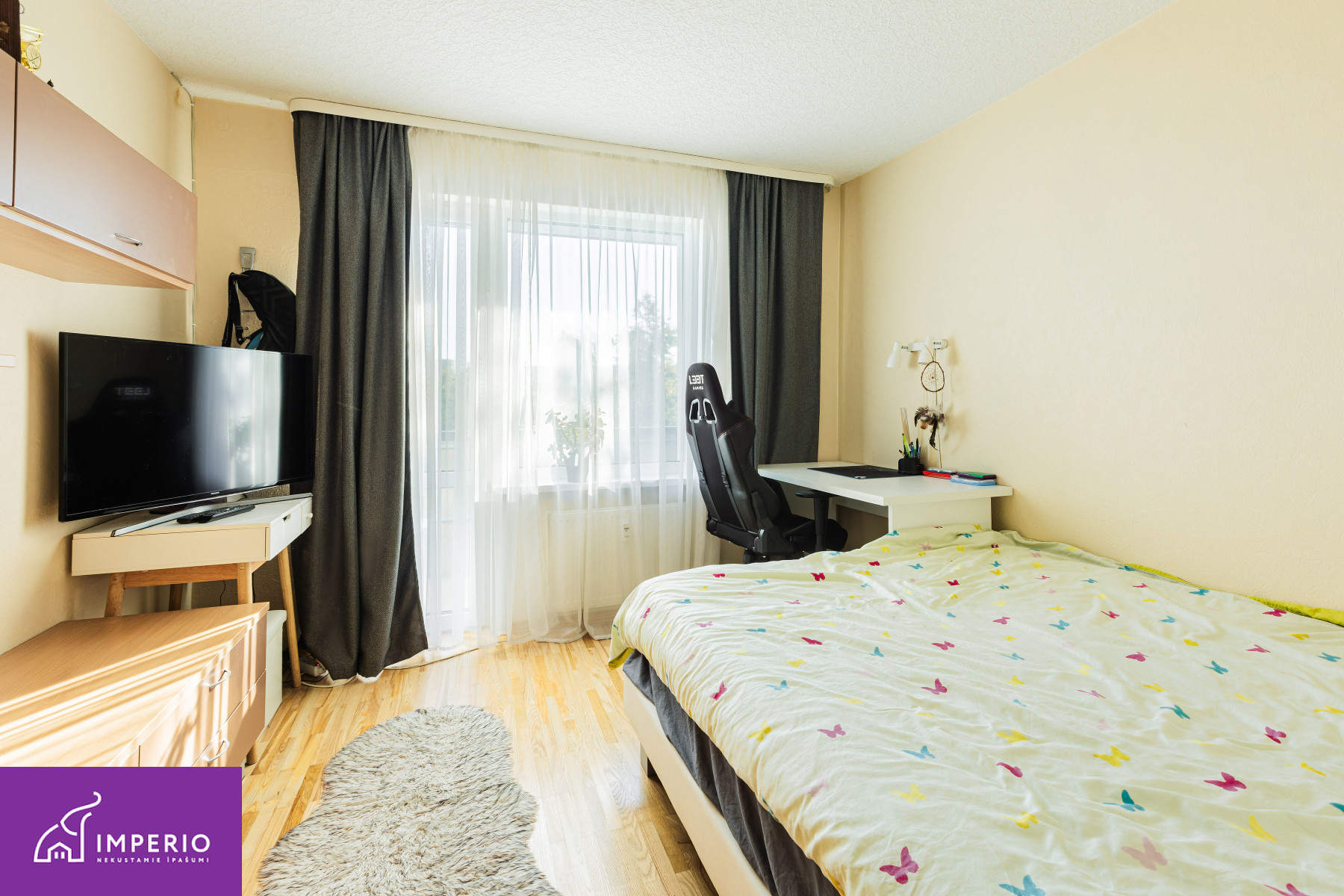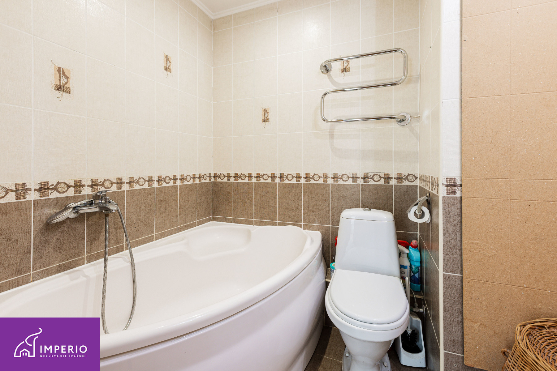 In the center of Piņķi, a fully furnished three-room apartment is for sale in a renovated building. During the building’s renovation, the facade and roof were renewed, and the windows, heating risers, and radiators were replaced. The heating system is equipped with allocators, allowing temperature regulation in each room and payment only for the heat actually consumed.