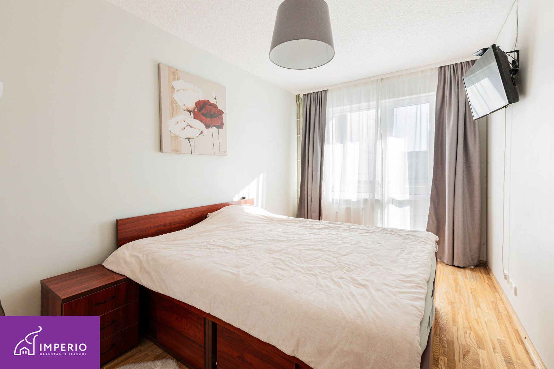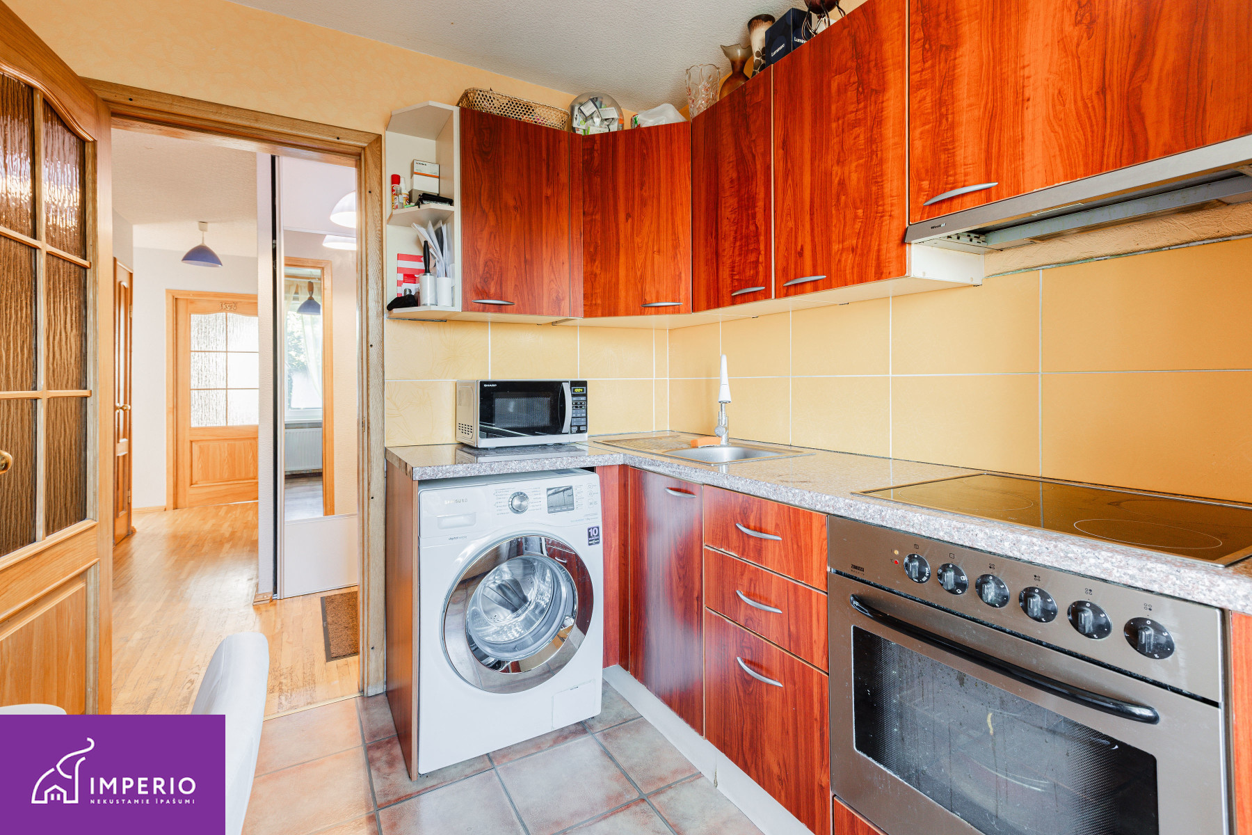 The apartment features three separate rooms, oak parquet flooring, and oak doors. The bathroom is fully tiled and fitted with a 100-liter hot water boiler. The kitchen has an additional 5-liter boiler for everyday convenience. During the renovation, all electrical wiring was replaced, and a new distribution board with automatic circuit breakers was installed.